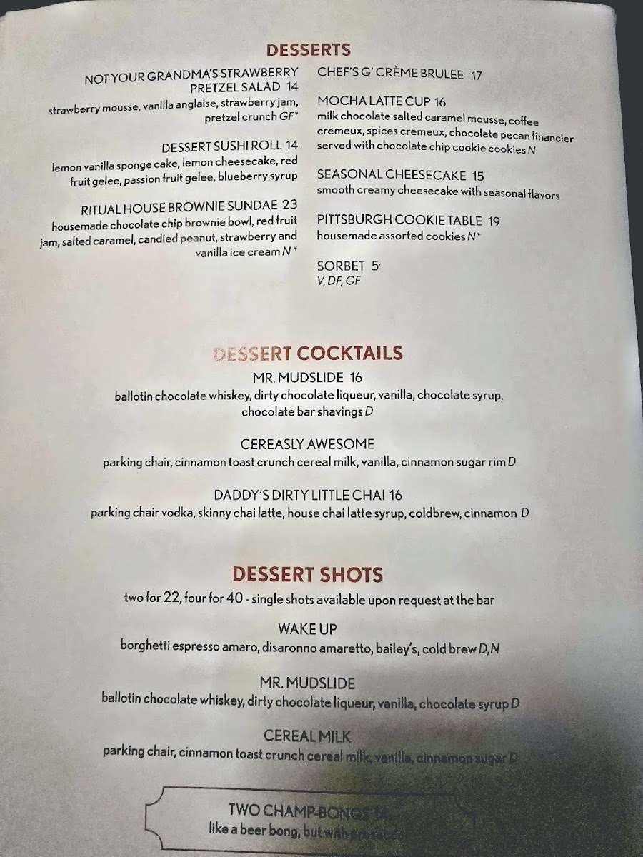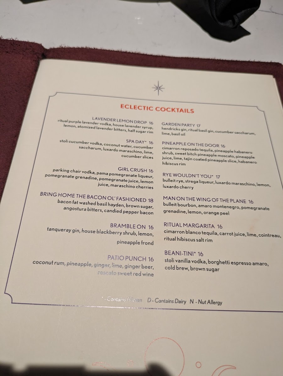 The menu at Ritual House offers a thoughtfully curated selection that balances comforting classics with a modern twist, ideal for those seeking both casual and refined dining experiences. From savory starters like deviled eggs and French onion soup to satisfying mains such as short rib and teriyaki salmon, the dishes invite leisurely enjoyment throughout the day—from brunch gatherings to relaxed dinners.